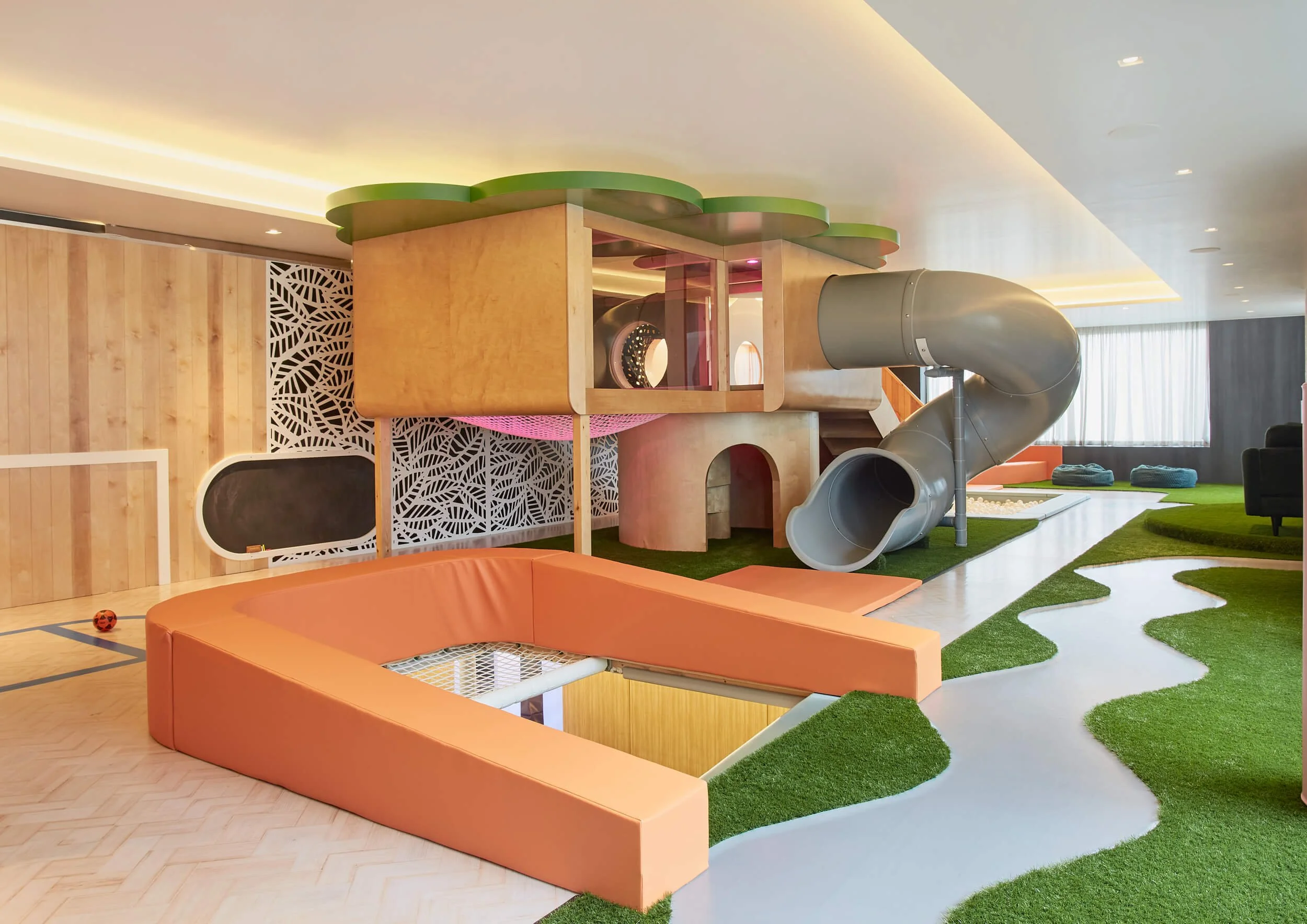 Lighting: Good lighting is important for both the safety and enjoyment of children in the play room. Consider installing skylights or windows to allow natural light to enter the room, or use artificial lighting to ensure the room is well-lit at all times. We can install lighting within the play structure for better visibility and as an added wow-factor.