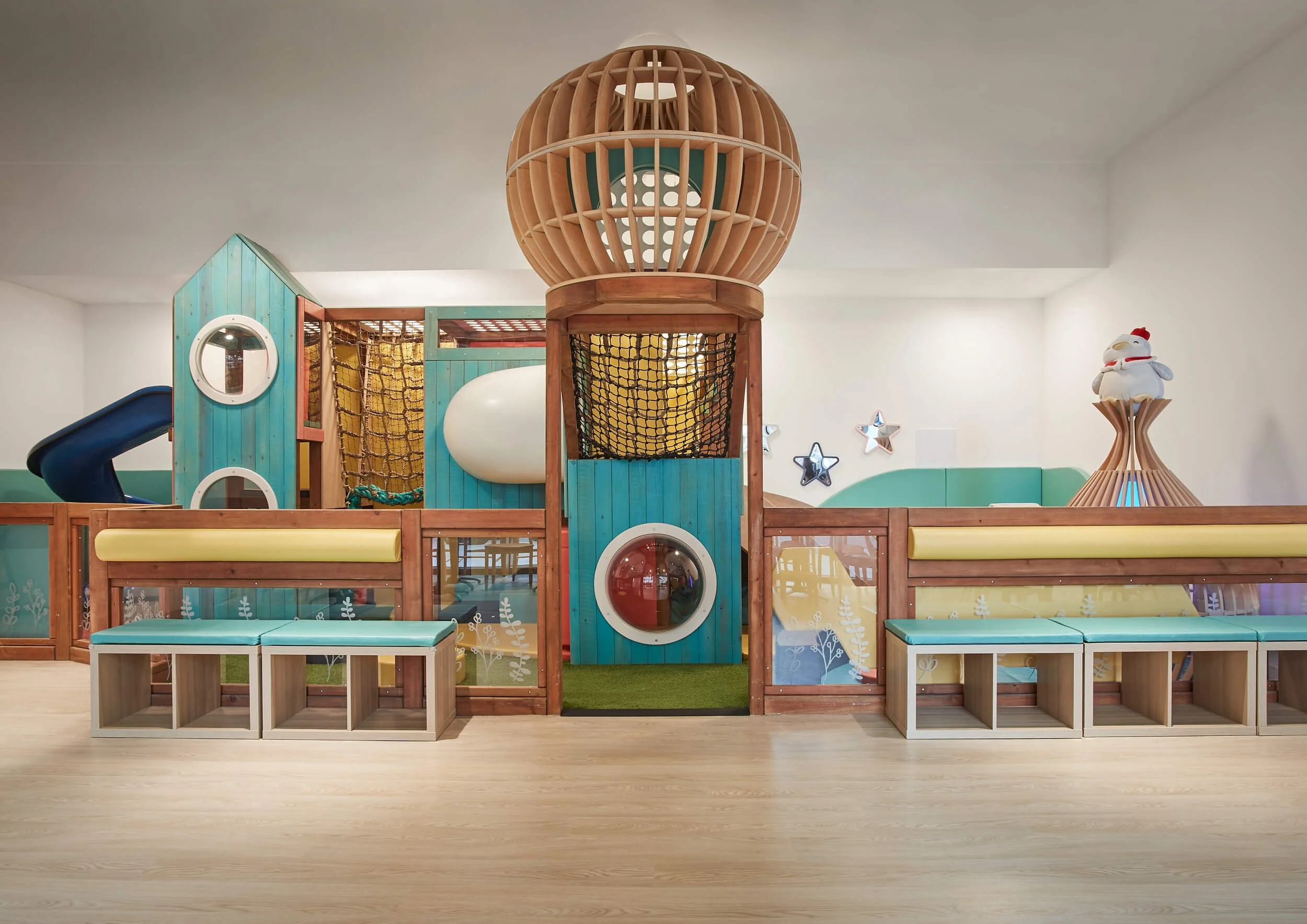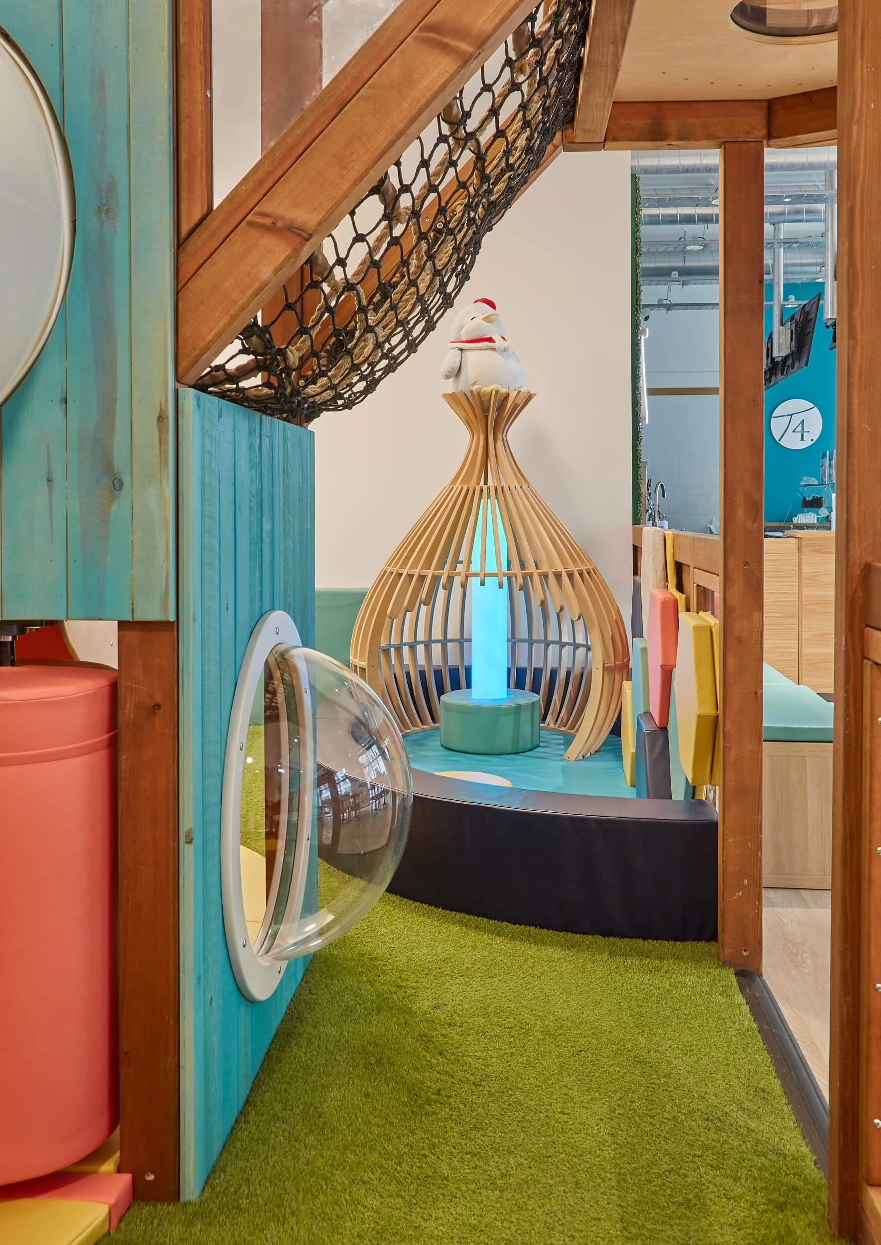 The play space is designed to include a sensory space for the youngest visitors, squeeze through obstacles and slides and an observation platform at the top for the most adventurous explorers.