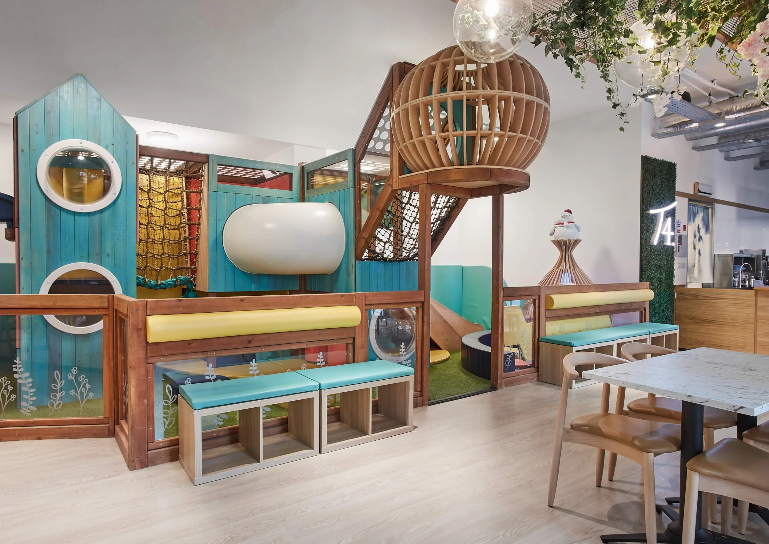This beautiful play space was created for the wonderful team at Macaroni Penguin, the client played a big part in the style of the structure and we love the end result! Macaroni Penguin is a multi function space for families, offering soft play, classes and plenty of Bubble Tea!